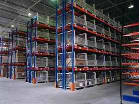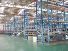 横梁式托盘货架采用插接式组合装配式结构,立柱采用冷轧钢板加工而成, 柱片为装配式结构,横梁与立柱之间为插接式连接,且配有自锁能力极强的弹簧 卡式安全销,确保在货架使用和叉车操作过程中横梁与立柱连接的安全可靠性和 万无一失;货架层高每75mm节距任意可调,单元货架每层载荷最高可达4吨;货 物置于托盘之上,由叉车进行存取作业,存放方便灵活,可配置前移式电瓶叉车、 平衡重式电瓶叉车、普通叉车及堆高机等搬运存取设备;横梁上也可铺设钢层板、 木层板、网式层板等层板;此种货架系统是目前最常用的仓储系统类型。